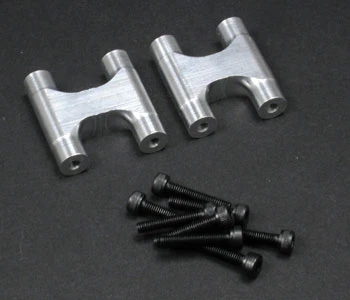 This is the optional Bulkhead Brace Set for Front and Rear Bumbers on a Traxxas T-Maxx or E-Maxx truck. These are the braces which fit inbetween the bumber mounts and bulkhead halves. FEATURES: Natural silver machined aluminum INCLUDES: Two bulkhead braces Eight 3x16mm cap head machine screws (.634") REQUIRES: Assembly onto T-Maxx or E-Maxx SPECS: Bulkhead Brace Length: 28.4mm (1.12") Center Distance Between Mounting Holes: 20.7mm (.82") Brace Thickness: 7.7mm (.30") COMMENTS: For blue braces, use DTXC2736 cmc 9/15/01