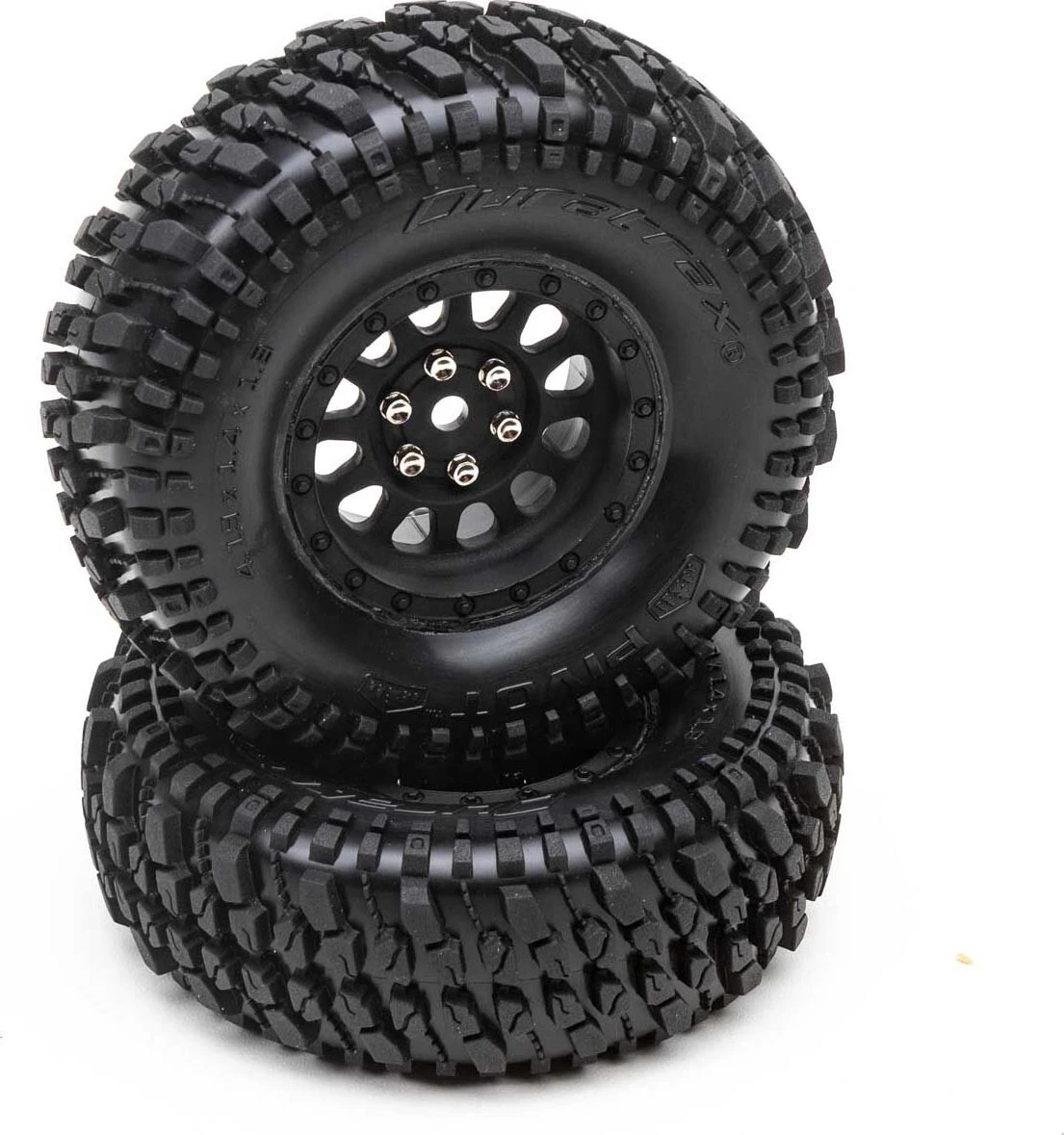 These Duratrax® PIVOT front and rear tires are Class 1 (4.19” outer diameter) size for maximum scale appearance, with a 1.9” inner tire/outer wheel diameter. Made from super-soft C3 compound rubber with an aggressive tread that bites into loose or muddy surfaces, these tires provide exceptional gripping power for climbing over slippery rocks and getting past the toughest obstacles. They include foam inserts and arrive factory-mounted to 12mm hex wheels that are molded from a durable black composite plastic. Sold in pairs.
