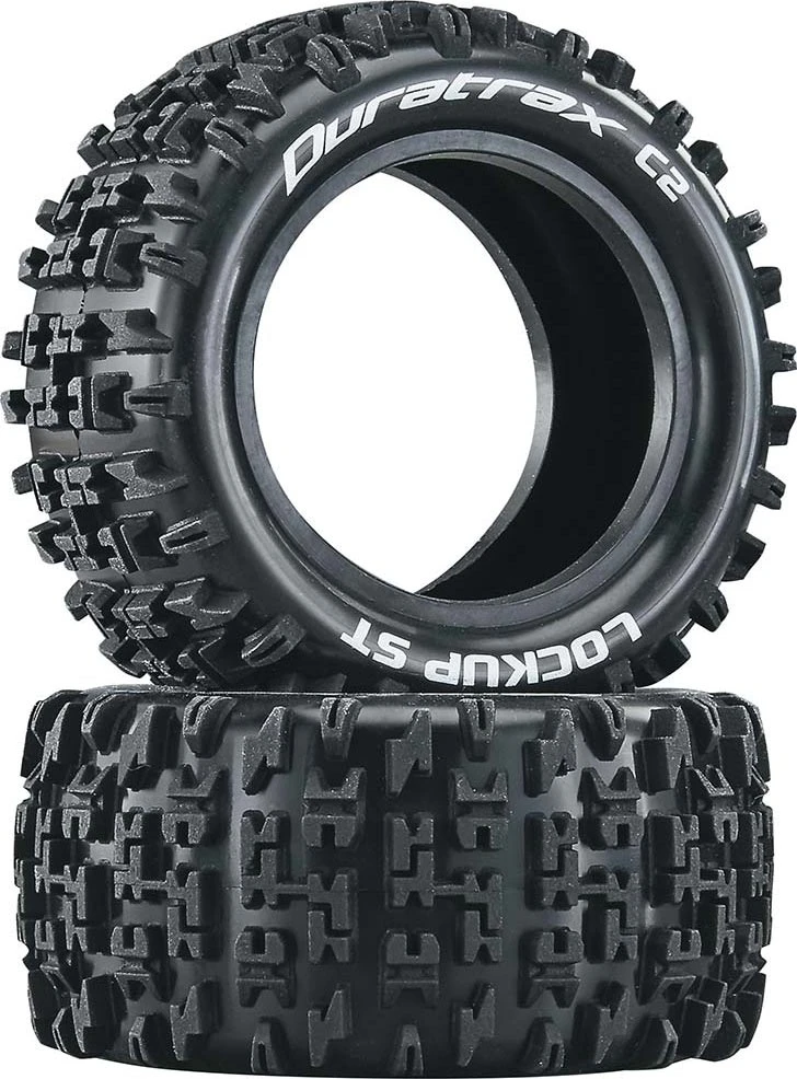 This is a pair of Duratrax Lockup 2.2" Stadium Truck Tires and Foam Inserts. FEATURES: Ideal for 1/16 scale trucks such as the Traxxas E-Revo and Summit and the HPI Savage XS Flux Also a great choice for 1/10 scale rear buggy tires Molded in soft C2 compound INCLUDES: Two Lockup 2.2" Stadium Truck Tires and Foam Inserts REQUIRES: Tire glue 1/16 scale truck wheels SPECS: Inner Diameter: 2.2" (56mm) Outer Diameter: 3.3" (84mm) Width: 1.6" (41mm) jxs 05/05/17 ir/jxs