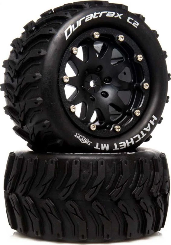 DTXC5521 – Hatchet MT Belted 2.8 Mounted F/R 0-Offset Black (2) By DURATRAX @ Great Hobbies