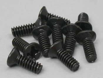 These are 4-40x5/16" Flat Head Machine Screws by DuraTrax. FEATURES: Plain black steel construction. Flat head with a phillips recess drive insert. INCLUDES: (10) Screws SPECS: Thread Size: 4-40 Length: 5/16" tjt 12151 kr2/26/03