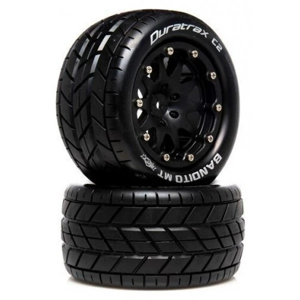A set of two (2) Duratrax part #DTXC5515, Bandito MT Belted 2.8″ 2WD Mounted Rear Tires with 0 Offset, Black