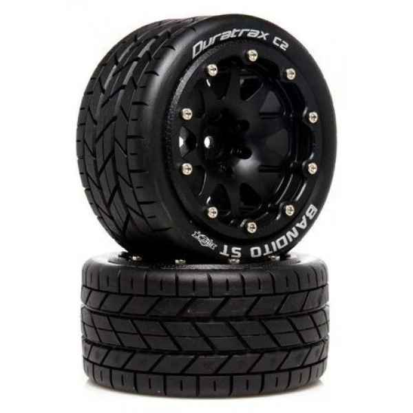 A set of two (2) Duratrax part #DTXC5531, Bandito ST Belted 2.8″ 2WD Mounted Rear Tires with 0.5 Offset, Black