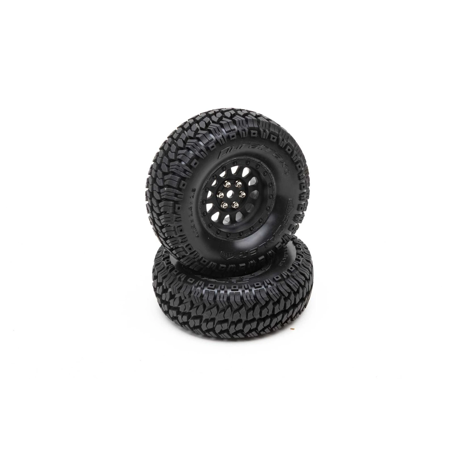 These Duratrax® SCALER front and rear tires are Class 1 (4.19″ outer diameter) size for maximum scale appearance, with a 1.9″ inner tire/outer wheel diameter. Made from super-soft C3 compound rubber with an aggressive tread that bites into loose or muddy surfaces, these tires provide exceptional gripping power for climbing over slippery rocks and getting past the toughest obstacles. They include foam inserts and arrive factory-mounted to 12mm hex wheels that are molded from a durable black composite plastic. Sold in pairs.