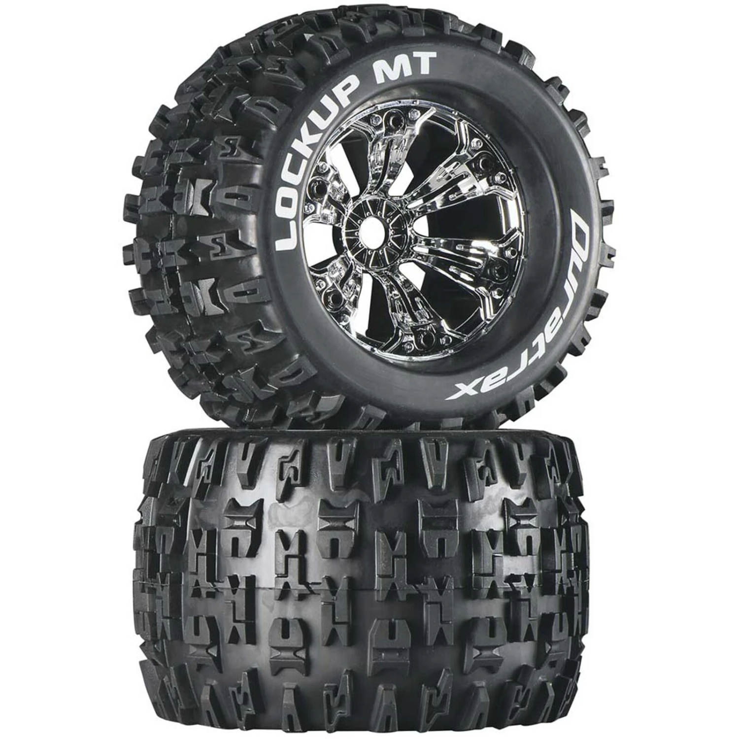Duratrax Lockup MT 3.8″ Mounted 1/2″ Offset Tires, Chrome (2)
