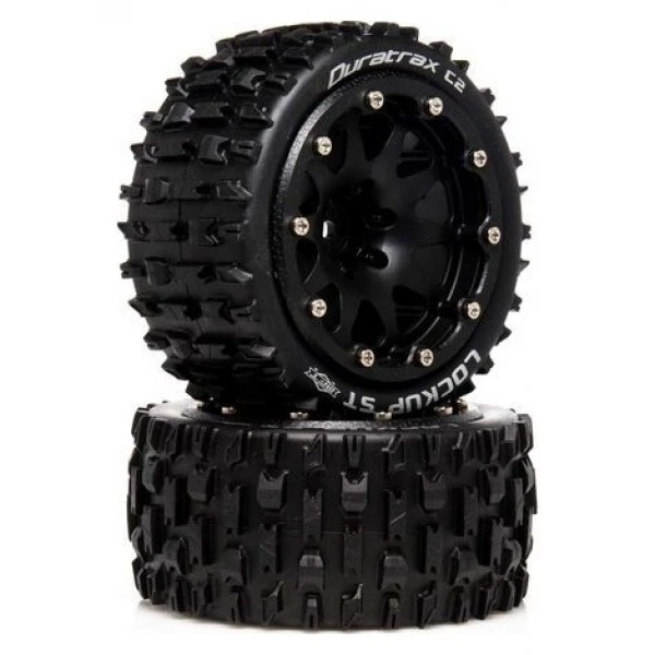 A set of two (2) Duratrax part #DTXC5533, Lockup ST Belted 2.8″ 2WD Mounted Rear Tires with 0.5 Offset, Black
