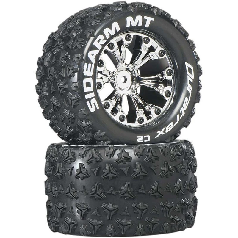 A set of two (2) Duratrax part #DTXC3517, Sidearm MT 2.8″ Mounted 1/2″ Offset C2 Tires, Chrome